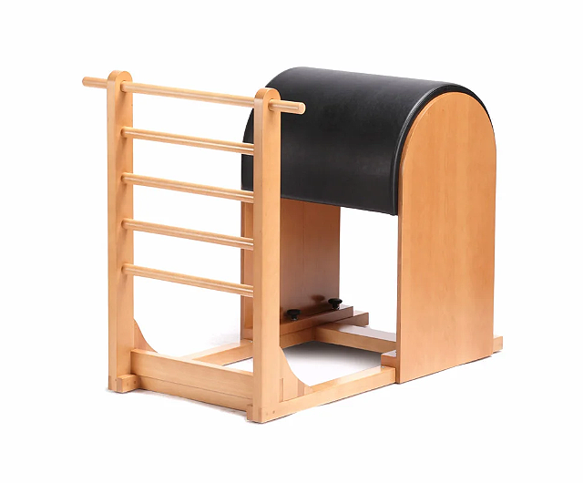 Bendis Pilates Ladder Barrel is a must for all of the studios and an indispensable part of stretching and strengthening exercises. It is made of combination of guaranteed hard beech tree and plywood, that is why it is so robust. It is resistant to fluids as it is finished in four layers of special, opaque varnish. Equipment upholstery is made of first class, antibacterial leather. The wooden rail and locking system that is placed under the barrel enables adjustment according to height of the athlete. This equipment is designed for good body condition and stabilization.