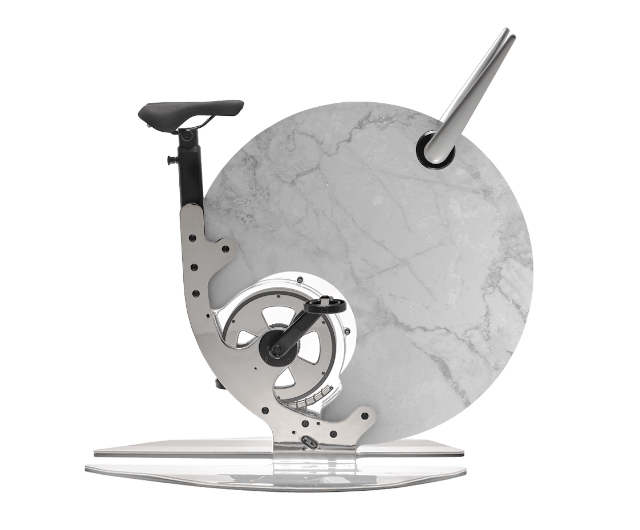Ciclotte Teckell was born from the cooperation of two italian excellences, united by the passion for design, technology and attention to details and Made in Italy. Ciclotte’s “Ride on design” philosophy merges with Teckell’s “Italian design looks forward”. The result is an exercise bike that, while maintaining its iconic design, for the first time experiments with the transparency and elegance of glass. Transparency connects the mechanical/structural parts like an invisible bridge: a revolution in the design of fitness equipment, confirming the uniqueness of the Ciclotte project. Ciclotte Teckell, with its minimalistic shapes, is the only design exercise bike in glass. Developed by following an accurate ergonomic study and featuring a transmission with a turn multiplier system, the bike is able to replicate the sensation of pedalling on the road and ensure high training workouts. For an even more immersive workout, a 4.0 functionality has been added to connect the bike to any Bluetooth device. Optional - A special kit consisting of a support for smartphones and tablets and an electronic chip has been designed to connect the bike to any mobile device via Bluetooth.
